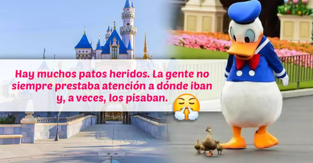 Solía trabajar en uno de los carritos al aire libre frente al castillo de Disneyland. Hay agua en varias áreas del parque, así que tenemos muchos patos, y en la primavera, los bebés patos caminaban ahí junto a sus madres. La gente no siempre prestaba atención a dónde iban y, a veces, los pisaban, por lo general, los mataban. Si podía, me alejaba de mi carro para escoltar a la familia de patos a un lugar seguro.