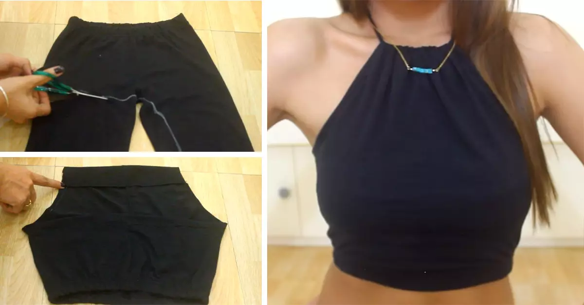 Y es que no volverás a tirar esos leggins que tanto te gustan cuando descubras cómo hacer con ellos un coqueto top halter. ¡Te encantará estrenarlo en el verano! Sólo necesitas esos leggins que estás a punto de tirar, un hilo del mismo color y unas tijeras, porque te enseñaremos un truco super fácil para darle una nueva vida a tu prenda favorita.