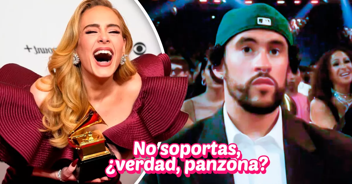 La reacción de Bad Bunny al discurso de Adele aceptando su Grammy por Best Pop Solo Performance se viraliza 😬