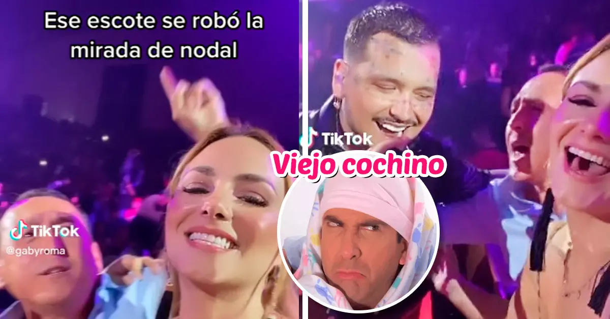 La mujer en cuestión, identificada como Gaby Roma, decidió grabar el momento de su encuentro con el intérprete de Adiós amor, que después compartió en su cuenta de TikTok. En el breve video observamos a Gaby cantando alegremente para después enfocar a Nodal, quien se acerca para unir su voz con la de ella, pero es justo en ese momento que a este se le van los ojos al pronunciado escote de su nueva corista.