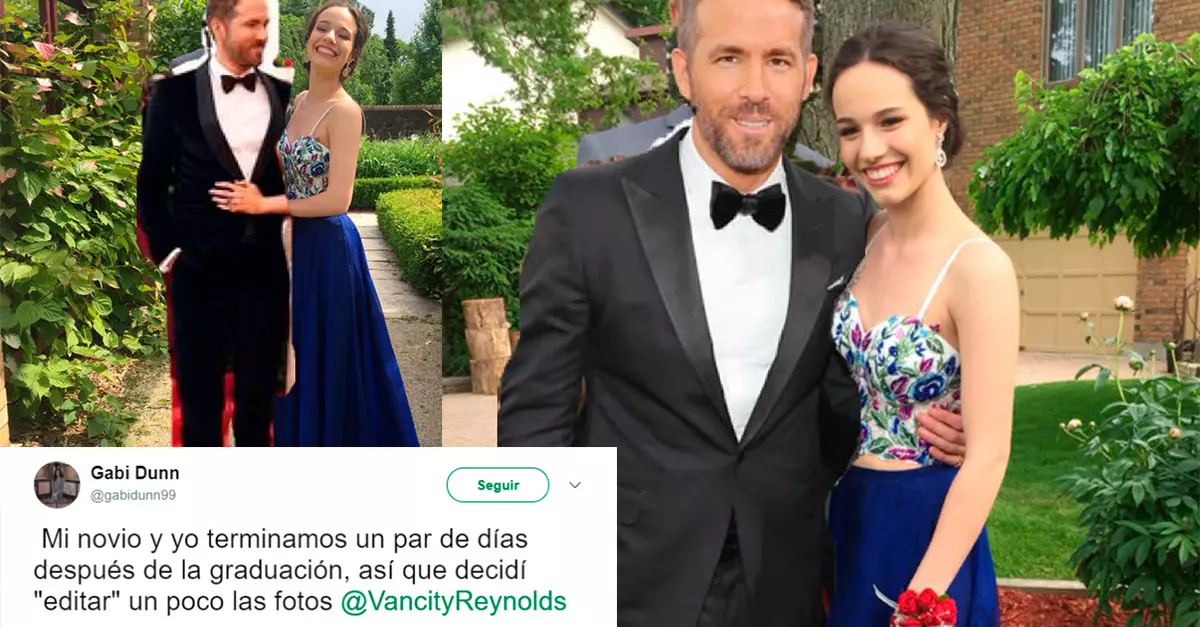 A principios de semana, Gabi Dunn, estudiante de preparatoria, tuiteó su foto de graduación junto al photoshopeado rostro del guapísimo y divertido Ryan Reynolds, todo esto porque Dunn había tenido una mala experiencia con su novio y terminaron su relación de una forma poco amigable.