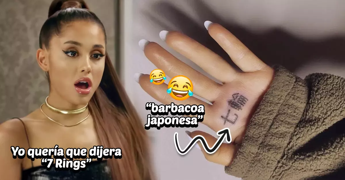La cantante estaba feliz de mostrar su nuevo tatuaje en Twitter. Según ella, la frase en japonés significaba “7 Rings”, pero en realidad decía: “barbacoa japonesa”. Luego trató de corregirlo y volvió a fallar, al final lo dejó por la paz.