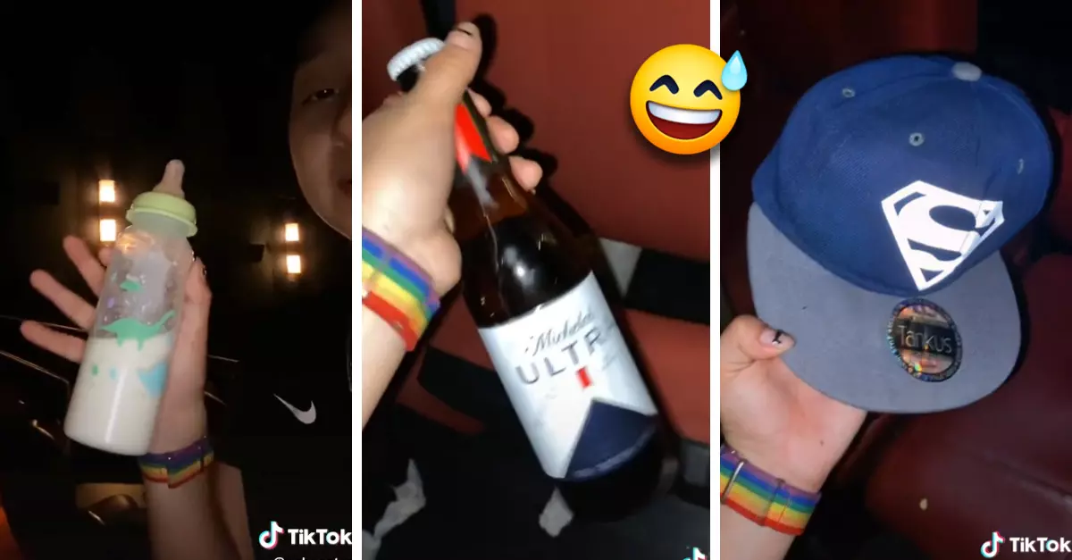 En otro clip podemos ver que llegó a encontrar el empaque de cervezas. ¡Cervezas en el cine! Está bien que algunas hemos aplicado meter dulces o algún snack porque los precios de la comida en el cine ya incrementaron, pero no tanto como para meter un sixpack. ¡Eso ya es muy atrevido!