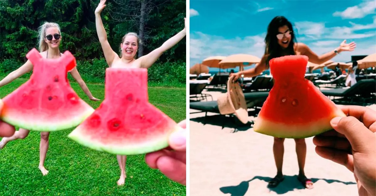 Pero no por su sabor, color o nutrientes, ahora en las redes sociales la están usando como el “vestido sandía”. Con el hashtag #WatermelonDress las personas comparten fotografías de sandías cortadas como vestidos. Sin duda la imaginación puede ser infinita y muy divertida, echa un vistazo a estas ideas y atrévete a probarlas.