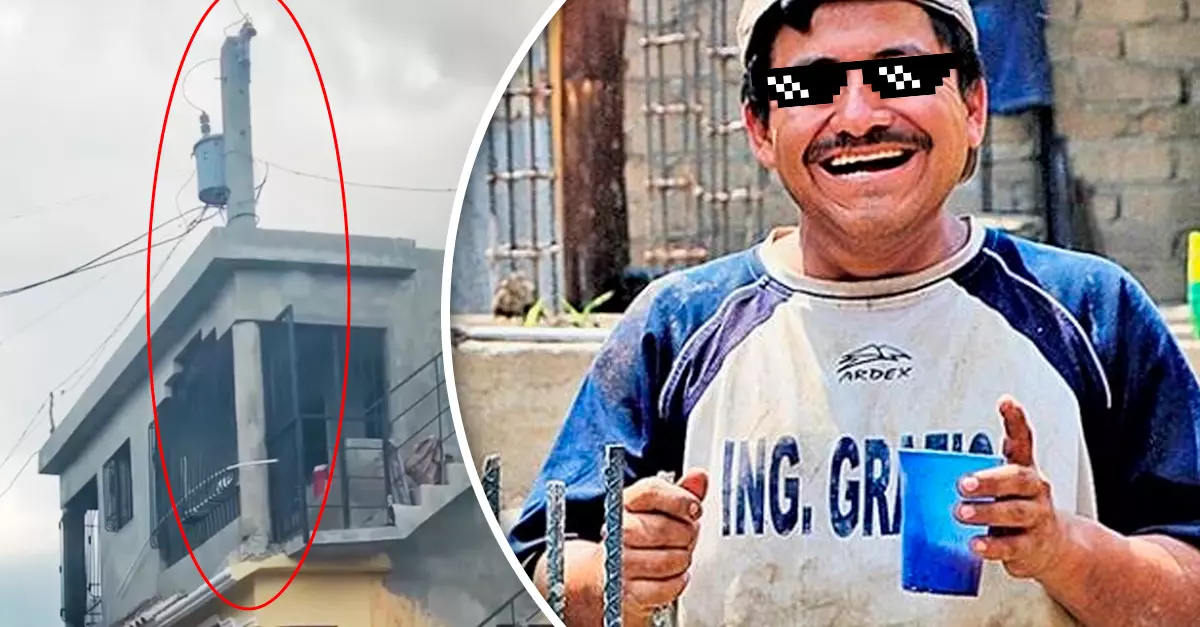 Por si fuera poco, el transformador del poste de luz quedó prácticamente descansando en el techo del hogar, así como varios cables. Sin importarles lo inseguro que era construir de esa manera, los propietarios decidieron seguir adelante con el proyecto, por lo que ahora no les queda más remedio que vivir con el peligro de una descarga eléctrica o que el poste no sea lo suficientemente fuerte como para sostener la casa en pie.