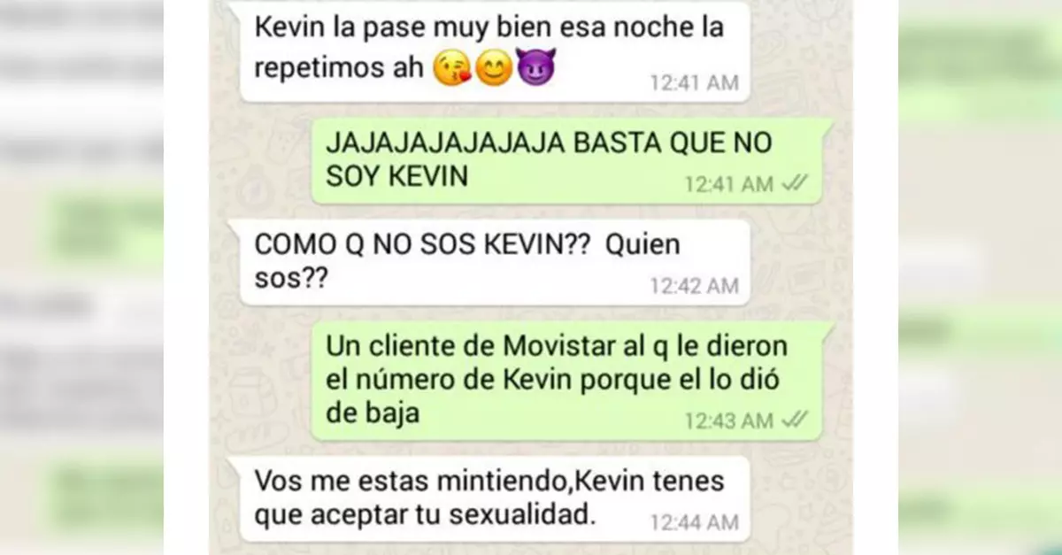 El usuario en Twitter, Rama, escribió: “No soy Kevin” una y otra vez el día que cambió el chip de su celular y la compañía telefónica recicló su número, situación que provocó que al menos una decena de contactos desconocidos le enviara mensajes de texto, a pesar de que el paciente chico negara en todas las ocasiones ser el popular Kevin. Conoce la historia de estas conversaciones por Whatsapp; algunas son tan absurdas ¡que son divertidísimas!