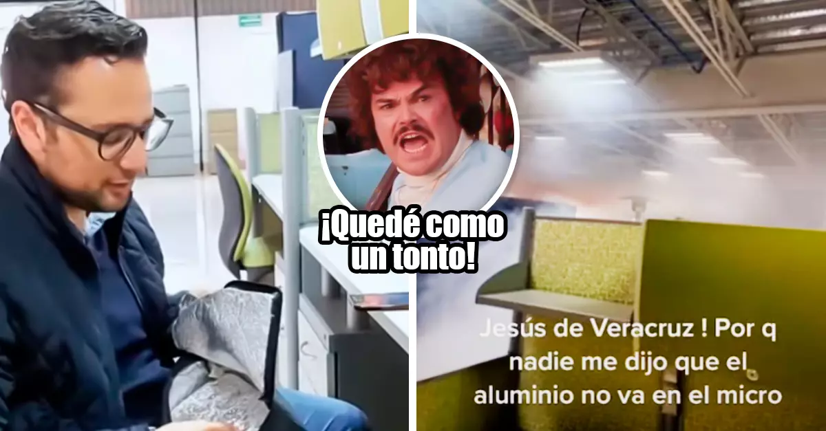 Roberto Herrera, originario de Monterrey, Nuevo León, en México, compartió la triste historia de cómo se quedó sin bono, sin desayuno y por poco hasta sin empleo. Resulta que el joven trabajador llevó burritos de huevo con jamón a su trabajo para el desayuno, pero cuando se dispuso calentarlos en el microondas de la oficina, no les quitó el aluminio y el micro estalló en llamas.