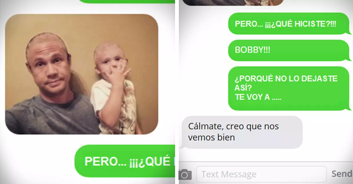 Sin embargo, cada vez que papá se queda a solas con los hijos, ocurren todo tipo de situaciones: desde una caída, hasta un nuevo corte de cabello, tal como sucedió con Bobby, quien por poco lleva a la locura a su pareja al enviarle una fotografía del “nuevo look” que su propio hijo se hizo mientras él “lo cuidaba” o, por lo menos, eso se suponía que hacía.