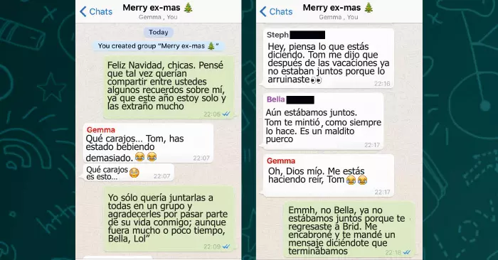 Por supuesto ésta no fue una idea fantástica, pues la conversación rápidamente se volvió incómoda y llena de insultos y reclamos. Este creativo chico denominó al grupo “Merry Ex-mas”, una combinación de palabras entre Feliz Navidad y Ex en inglés. La conversación hasta el momento ha sido compartida más de 10 mil veces, pero aún me sigo preguntando: ¿se trataba de una broma o realmente quería llenarlas de buenos deseos? ¿Tú qué opinas?