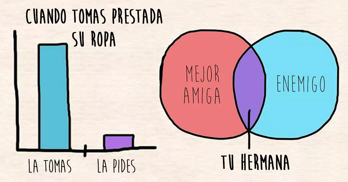 La artista gráfica Farrah Penn captó a la perfección el resultado de una vida compartida al lado de una hermana en estas divertidas gráficas que describen cada situación.