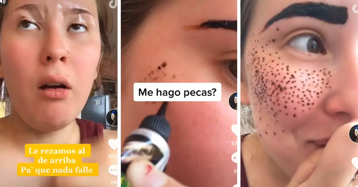 Kimberlypinto03, una usuaria de TikTok, vivió en carne propia que no todo lo que encuentras en la red te va a garantizar buenos resultados. La chica se grabó mientras intentaba darle algo de color a sus cejas con henna y de paso pintarse muchas pecas en el rostro.