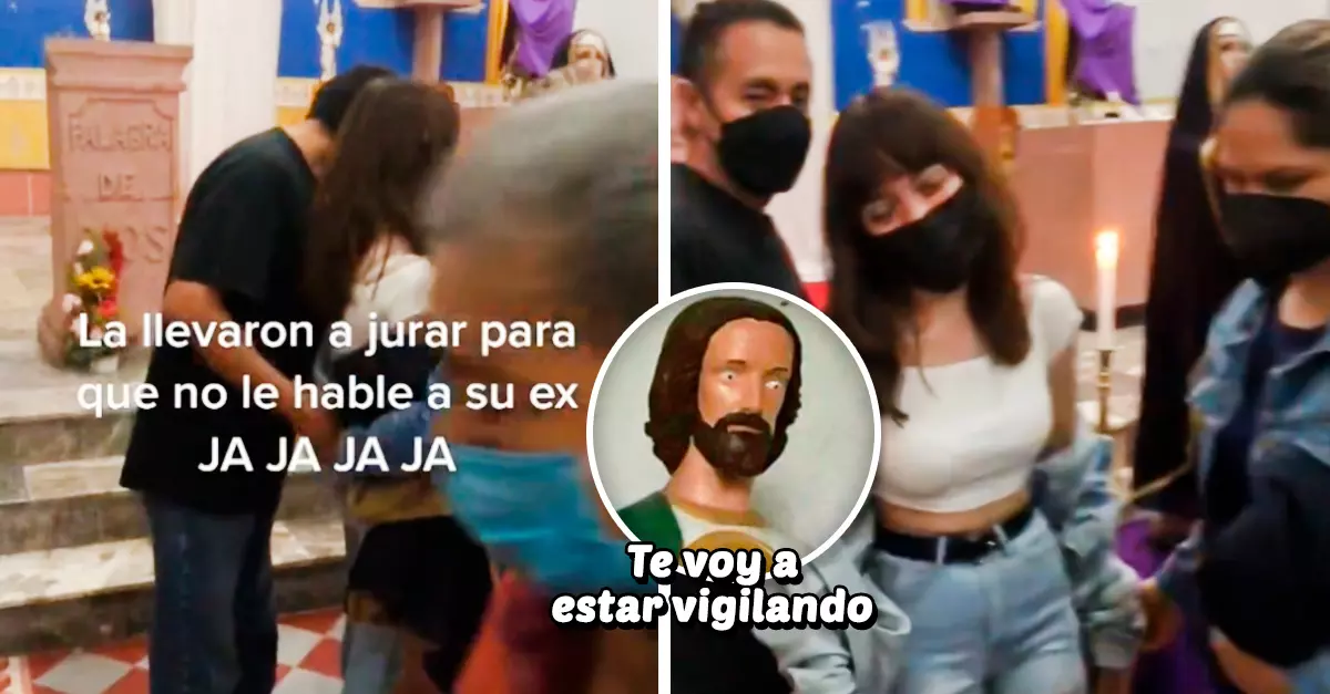 Precisamente, eso fue lo que le pasó a una joven, quien fue llevada por sus padres a la parroquia más cercana, para jurar ante Dios que no volverá a hablar con su ex.