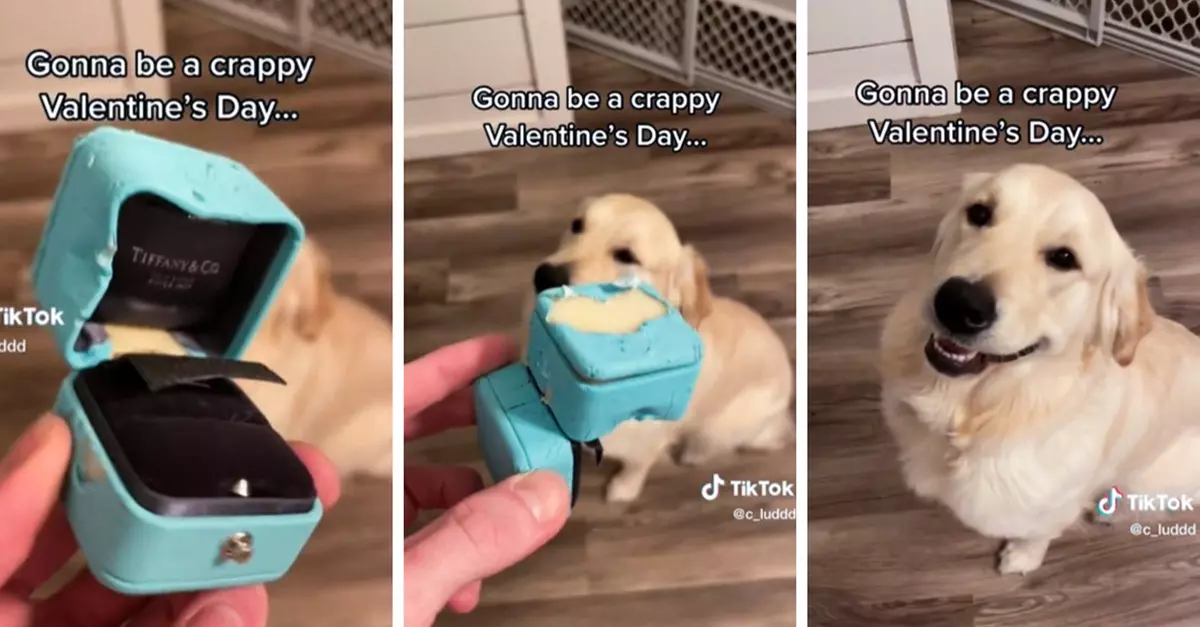 Resulta que a un travieso lomito se le ocurrió la brillante idea de comerse el anillo de compromiso que sería parte de una romántica sorpresa que su humano planeó para su amada novia, arruinando de esta manera el Día de San Valentín, aunque tal vez solo mostró su opinión al respecto con su conducta.