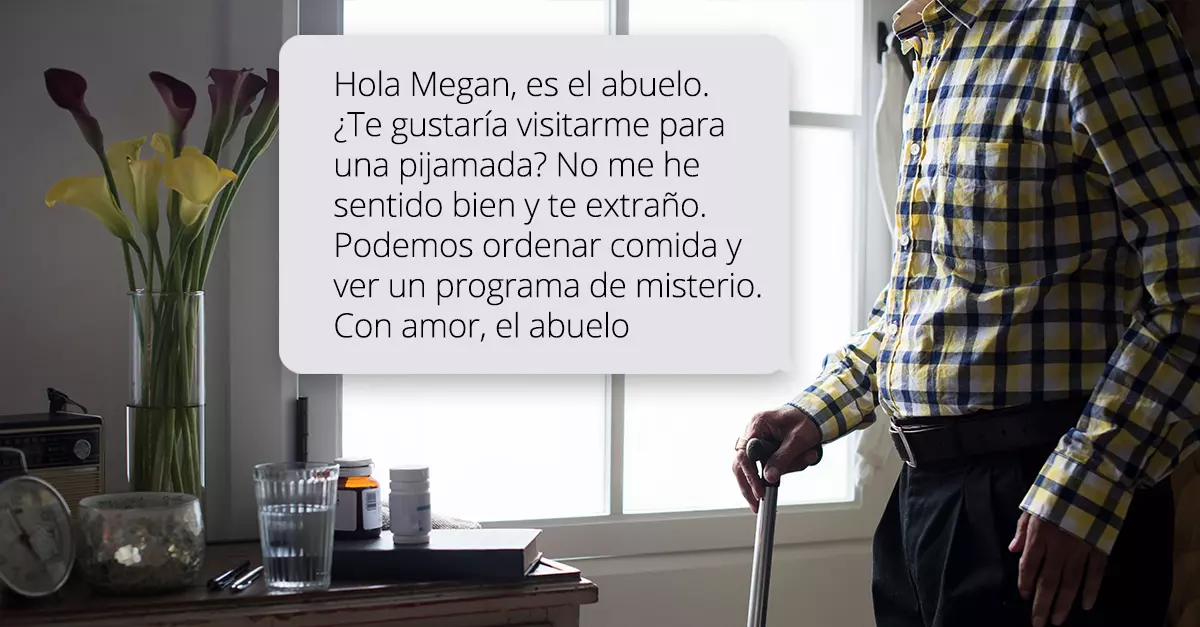 Un par de días después, el abuelo le envió un mensaje de texto a su nieta para decirle lo mucho que la extrañaba e invitarla a una “pijamada” en su casa, en donde el plan incluía comida y un show de misterio en la televisión.