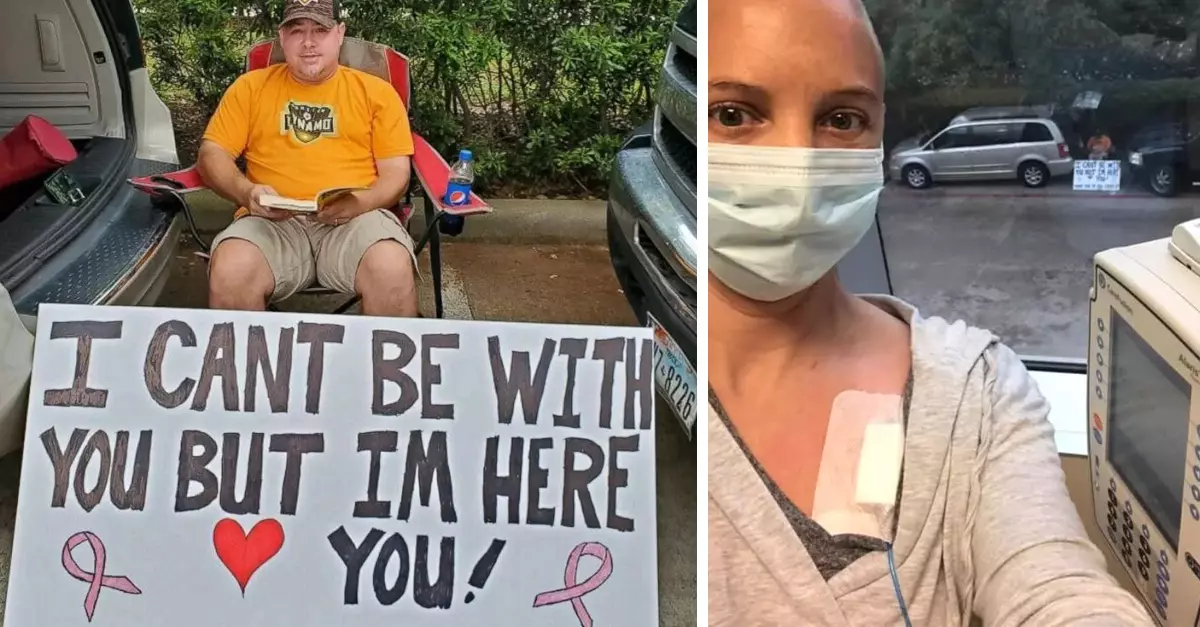 Albert se quedaba afuera y esperaba a que Kelly recibiera su tratamiento, pero ese apoyo no era suficiente para él, así que en unas de las visitas se situó afuera de la ventana del hospital y sostuvo un cartel con un hermoso mensaje de apoyo para su esposa.