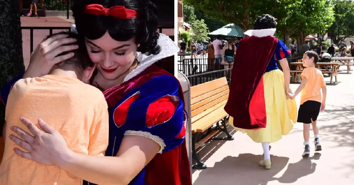 Lauren Bergner, madre del pequeño, compartió en su cuenta de Facebook la historia de cómo la princesa Blancanieves, quien se dio cuenta de la condición del niño, lo calmó abrazándolo e incluso recostando su cabeza sobre su regazo mientras estaba abrumado.