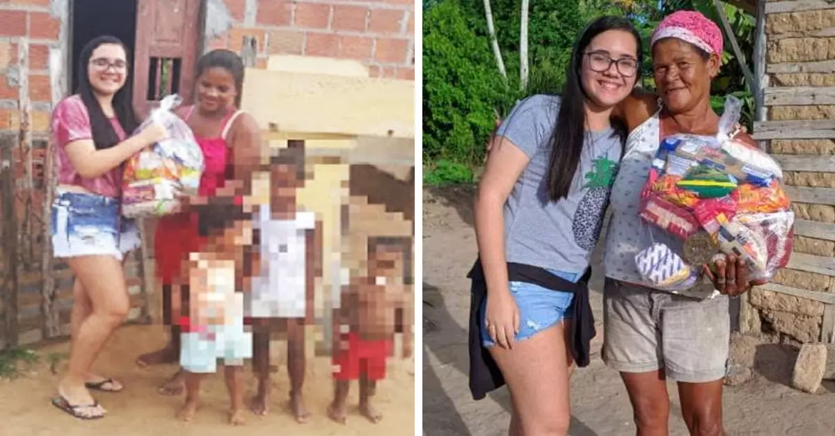 La joven entregó personalmente 60 canastas básicas en localidades vulnerables. Su padre, Adriano Reis, la apoyó en todo momento y respetó a su decisión.
