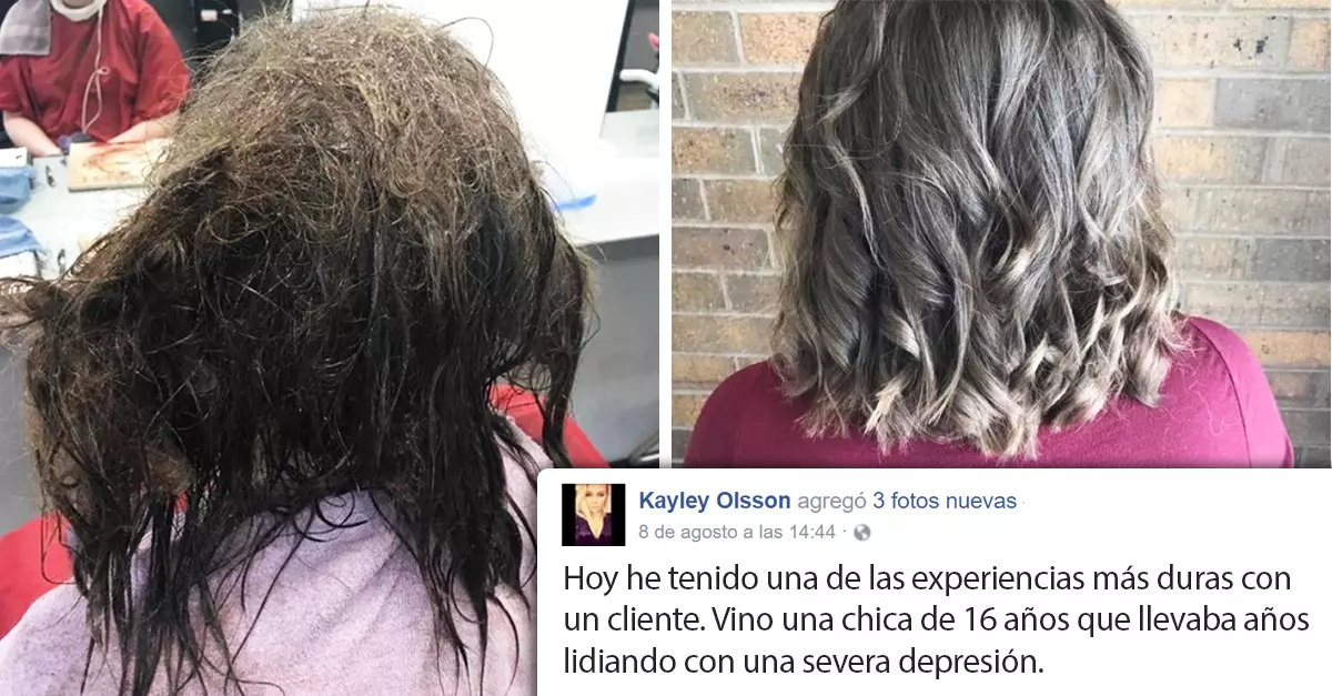 Kayley le cortó el cabello a una chica de 16 años; cuando la joven llegó su cabello era un desastre, la depresión la hacía sentirse tan mal que ni siquiera podía cepillarse el cabello. Olsson pasó 13 horas arreglándolo y después mostró las imágenes en sus redes sociales. Su cambio es increíble.