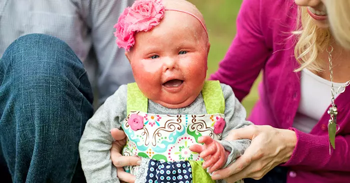 Estás al final del pasillo del supermercado —dice Courtney como si le hablara a cualquier otra madre— cuando tu hijo descubre en el carro del bebé a mi hija y te pregunta: “¿Por qué esa bebé esta tan roja?” Prácticamente pones tu mano sobre su boca mientras corren a la esquina sin mirar atrás. Esto se desarrolla casi todos los días. He oído todas las preguntas. Veo con el rabillo del ojo a todos los que señalan a Brenna y me doy cuenta de todos los comentarios en voz baja.
