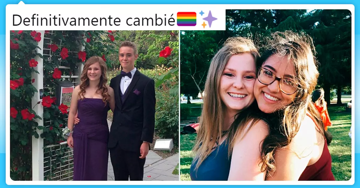 Ella bromeó en Twitter con un antes y después de sus fotos de hace cuatro años e incluyó la leyenda: “¿esto cuenta como un Glo Up?”. En la primera foto aparece junto a su amigo Dylan, en el primer año de preparatoria. Sin embargo, la foto actual es la que ha causado revuelo entre los usuarios, pues se puede ver a una Caitlin confiada, despreocupada y muy enamorada, pero no de un chico, sino de su novia Kirrin Chew, con quién ha estado saliendo durante un año.