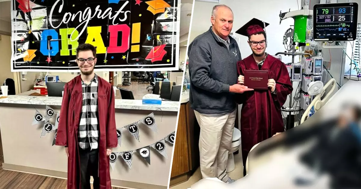Debido al delicado estado de salud de su madre, Caleb, estudiante del último año de la Escuela Secundaria Blanchard, en Oklahoma, Estados Unidos, optó por adelantar su graduación. Con permiso de los directivos de la institución educativa, el joven llevó a cabo la entrega de su reconocimiento rodeado de sus familiares en el Centro Médico Integris Health Southwest, donde su mamá se encontraba hospitalizada.