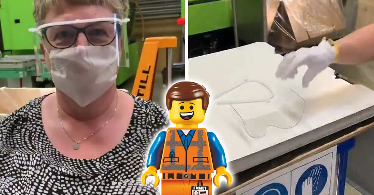 La compañía reunió todos sus recursos para hacer más de 13,500 viseras por día. Convirtió seis máquinas de modelo para producirlas en la fábrica de Billund, Dinamarca.