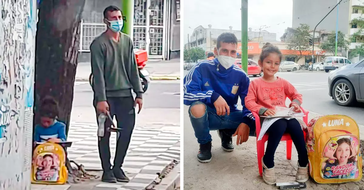 Mauro, originario de Tucumán, Argentina, pasaba sus días limpiando vidrios en una esquina de la ciudad acompañado de su hija, quien hacía sus tareas escolares a la intemperie.