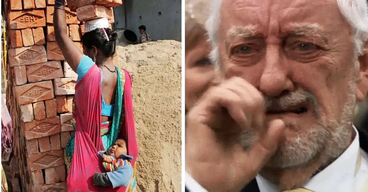 Una imagen captada en India se viralizó a través de Reddit; en ella se puede ver una trabajadora cargando seis pesados ladrillos en la cabeza mientras carga a su bebé en la espalda con un fular.