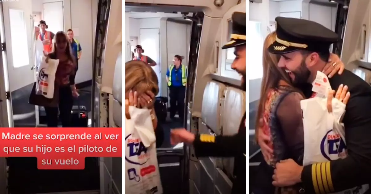 Gustavo Castañeda, piloto colombiano, ha tenido la suerte de llevar a su madre en su avión en más de una ocasión. Sin embargo, en su más reciente vuelo decidió sorprenderla y no decirle que iba a estar al mando del viaje, situación que quedó graba en video. En el clip se ve a su mamá abordar el avión y sorprenderse al verlo en la puerta de la aeronave. Su reacción es tan emotiva que rompe en lágrimas y expresa el orgullo que siente por él.
