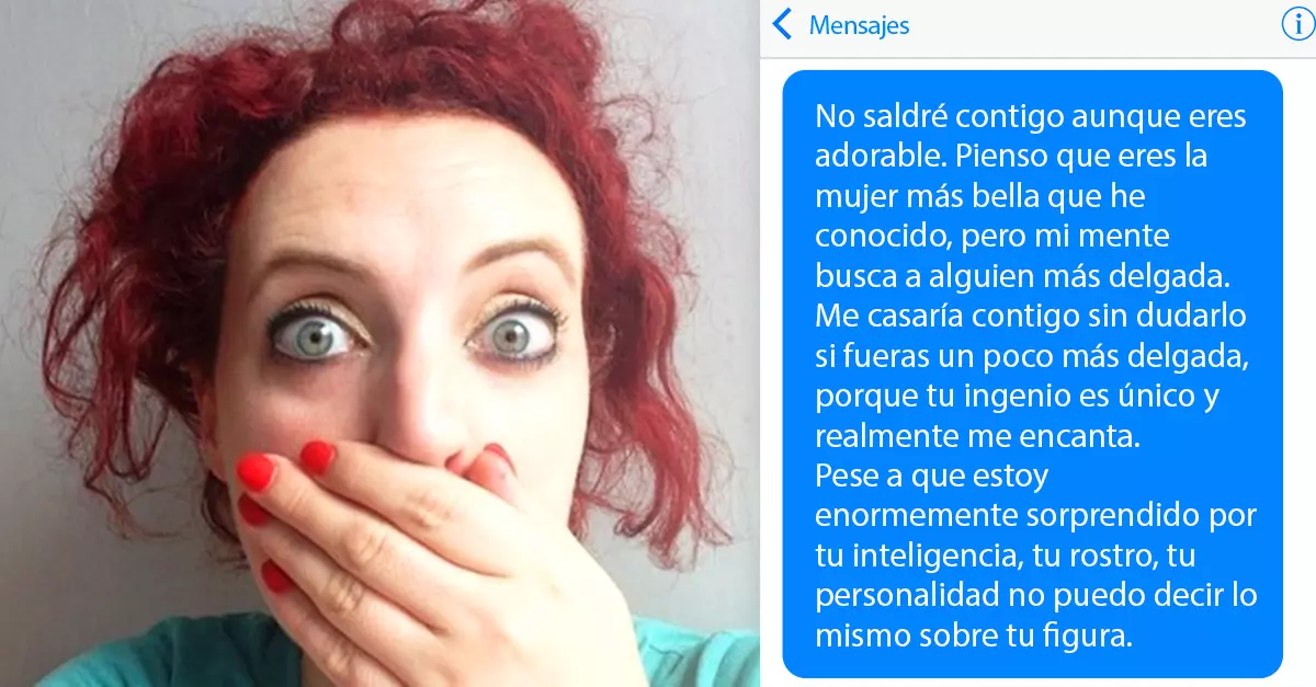 “No saldré contigo aunque eres adorable. Pienso que eres la mujer más bella que he conocido, pero mi mente busca a alguien más delgada.