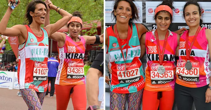 Vestida de rosa para concienciar también acerca del cáncer de mama, Kiran terminó la carrera en cuatro horas, 49 minutos y 11 segundos. Declaró que corrió a pesar de cólicos y la ansiedad del evento (para el cual se preparó durante un año), y que se sintió empoderada por haber podido hacerlo.