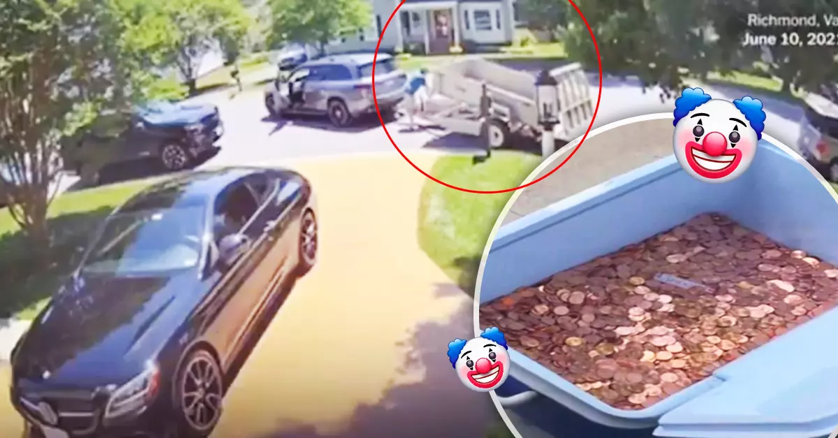 De acuerdo con Avery Sanford, de 18 años, su madre se percató de que un remolque dejó algo afuera de su casa, pero jamás imaginó que este fuera conducido por su exesposo y que llevara un cargamento en centavos para humillarla frente a todo el vecindario.