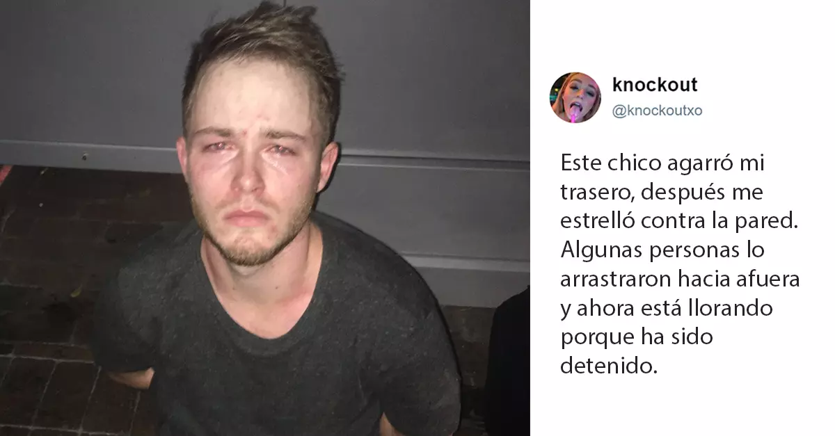 A raíz del incidente, el hombre terminó detenido y, por increíble que parezca, llorando en el suelo con las manos esposadas. Su ficha policial improvisada fue capturada con la cámara del teléfono de Olsen y compartida en Twitter, y ya ha recibido más de 80 mil retweets y alcanzado más de 355 mil likes.
