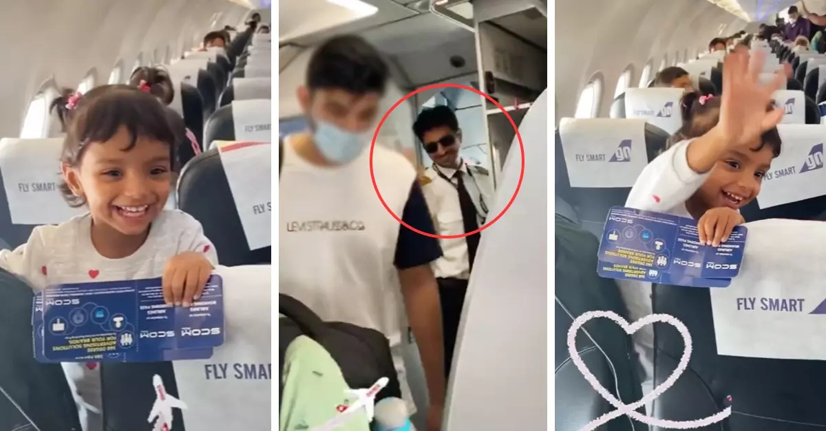 La pequeña se encontraba viajando en un vuelo hacia Delhi, India, junto a su madre, sin imaginar que su propio padre estaba en la cabina piloteando el avión. Cuando la pequeña lo descubrió, su mamá captó todo en video y después lo compartió en su cuenta de Instagram.