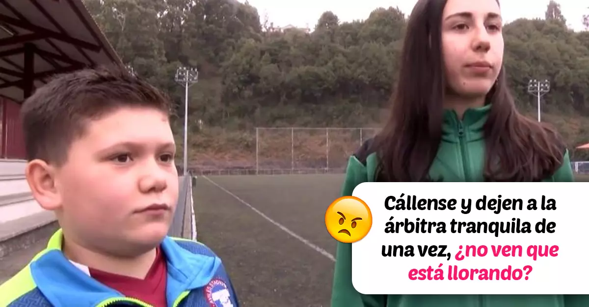 El pequeño no pudo ser indiferente ante las agresiones y las lágrimas de la árbitra Ana López, de 19 años. Por ello, se armó de valor y pidió respeto para ella, y para todas las chicas del mundo.