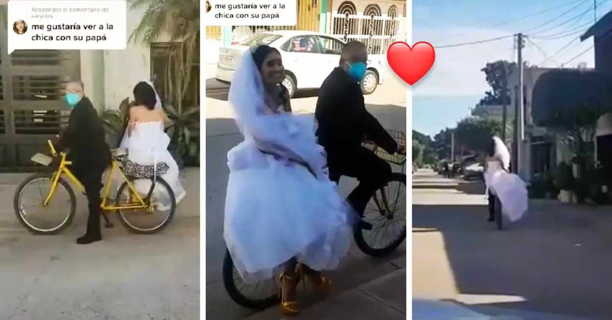 Tal como hizo este padre, quien no lo dudó ni un segundo y llevó a su pequeña vestida de novia en su bicicleta, justo como en los viejos tiempos cuando ella era una niña y él la paseaba en la parrilla. Solo quería demostrarle que para él siempre será su dulce bebé.