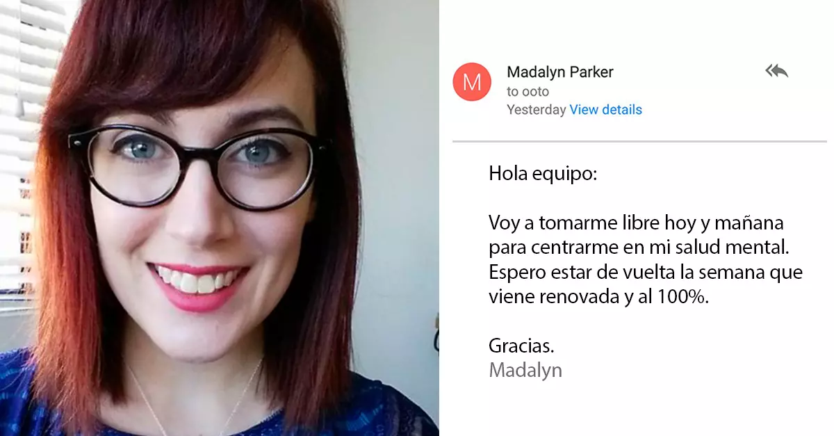 Esto es lo que le ocurrió a Madalyn Parker, una chica que trabaja como desarrolladora web, quien solicitó permiso en su trabajo para ausentarse un par de días para concentrarse en atender su salud mental. Lo increíble, fueron las respuestas recibidas.
