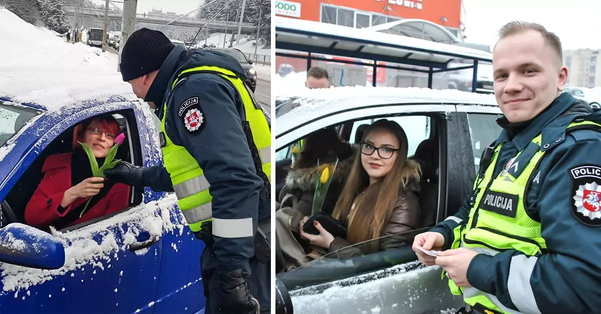 Durante los últimos cuatro años en el Día Internacional de la Mujer, los policías de Lituania detienen los coches de las conductoras por una bonita razón: en vez de ponerles una multa, les dan flores para conmemorar la ocasión. Aunque el gesto se ha vuelto viral, Internet tiene sentimientos encontrados al respecto.