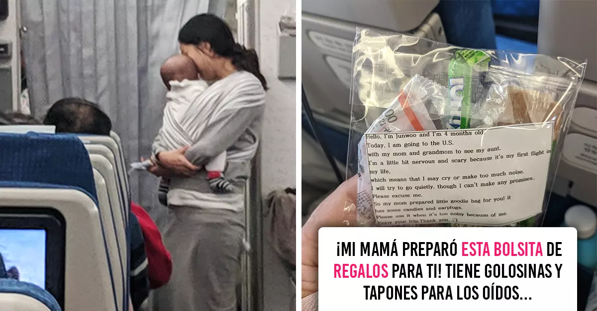 Antes de despegar, la madre se levantó de su asiento y con su bebé en brazos repartió 200 paquetes con caramelos y tapones para oídos, para que en caso de que su pequeña se pusiera a llorar el viaje fuera agradable para todos.