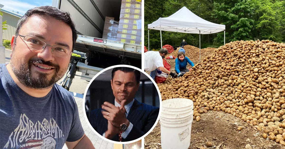 Ahora la misión era trasladar los vegetales a un lugar donde pudieran limpiar las papas y empaquetar los alimentos para después entregar los bultos a los bancos de comida. Y cuando menos lo esperaban ya habían entregado cerca de 70 toneladas de comida.