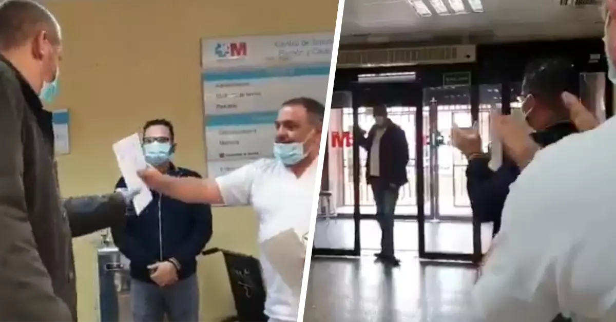 El personal del hospital se percató de su gran acción y decidió recompensar su generosidad con un pequeña sorpresa. En cuanto el chofer entra por la puerta del nosocomio, médicos y enfermeros lo reciben con aplausos y ovaciones.