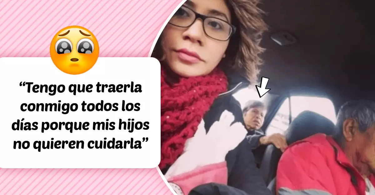 En el transcurso, el hombre le contó que tenía que llevar diariamente a su esposa en el asiento de atrás porque ninguno de sus hijos quería hacerse cargo de ella y no era una opción dejarla sola. Conmovida por la historia, la mujer decidió compartirla en sus redes sociales.