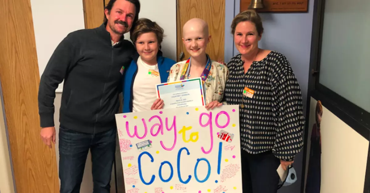 Su madre, April Danz, compartió en su cuenta de Twitter el conmovedor momento cuando Coco toca la campana de la vida para celebrar este gran logro.