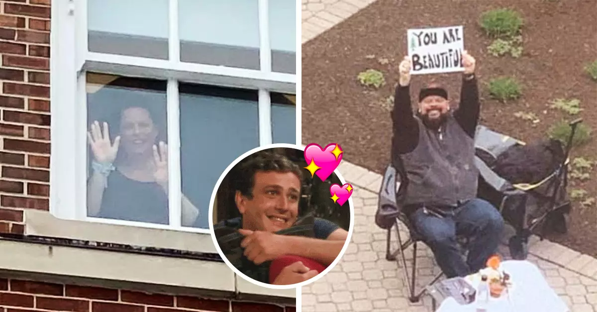 Separarse en esta etapa fue difícil para la pareja, ambos necesitan el apoyo del otro. Su esposo no podía visitarla en el hospital por el riesgo de contagio de Covid-19. Al principio se comunicaban por videollamada, pero no fue suficiente; Bob tuvo que ingeniárselas para apoyar a su mujer y la mejor manera fue plantarse afuera de su ventana del hospital y darle ánimos con carteles. ¡Eso es amor!
