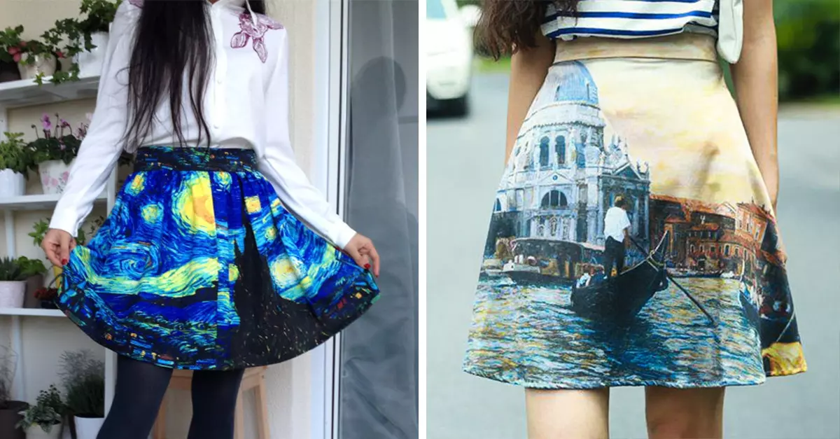 Purple Fishbowl es una boutique que se especializa en crear ropa increíble con una característica particular: recrean piezas de arte famosas en blusas, faldas y vestidos, desde La gran ola de Kanagawa de Hokusai, hasta La noche estrellada de Van Gogh. A continuación te mostramos algunas de sus prendas más originales.
