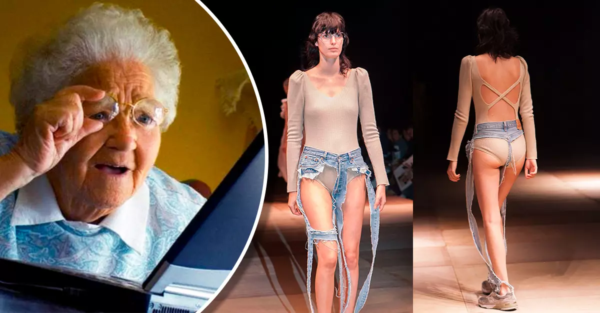 Aunque ya hemos sido testigos de algunas prendas incómodas y horribles, estamos seguras que no hay nada que se le compare a los nuevos jeans de tanga. En la pasarela del show Thibaut, la tela casi inexistente de éstos llegó a un nivel completamente nuevo. Con los paneles frontales y posteriores de las piernas recortados y dejando solo a la vista las costuras y una pequeña tanga que se forma en la cadera, estos pantalones te harán preguntarte: ¿quién demonios los usará?