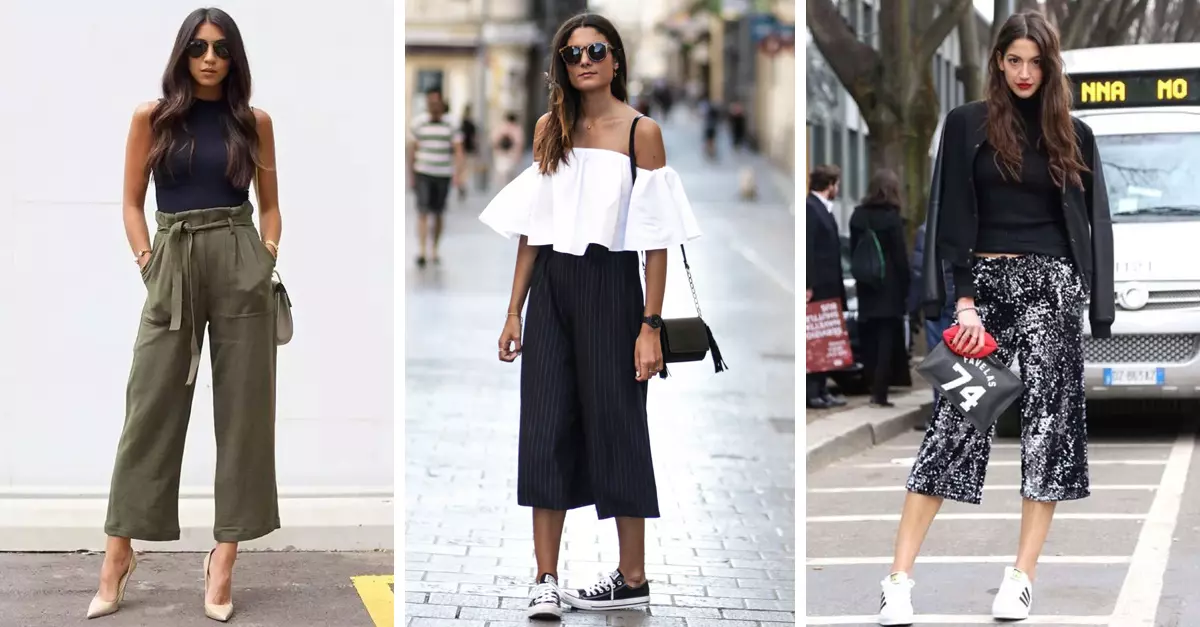Este tipo de pantalones aparece en muchos bloggers importantes de moda, y las chicas amantes del street style definitivamente los adoran. Aunque la silueta que los pantalones logran es más holgada, la clave para dominar la tendencia del pantalón ancho es dejar que no se arrastre. Sí, tienes que encontrar un pantalón que vaya con tu tamaño, combinarlo con crop tops para alargar tu figura y usar stilettos o tacones para que resalte aún más. Estas son las formas correctas de usar pantalones anchos.