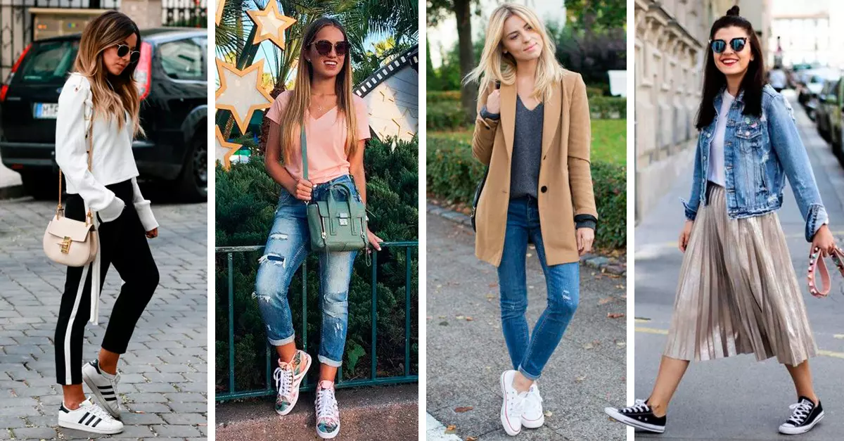 Los tenis son el mejor calzado, no solo para las universitarias sino también para las chicas que trabajan. Y es que, además de ser cómodos, van bien con cualquier atuendo, no importa si es un vestido, falda, jeans y culottes.