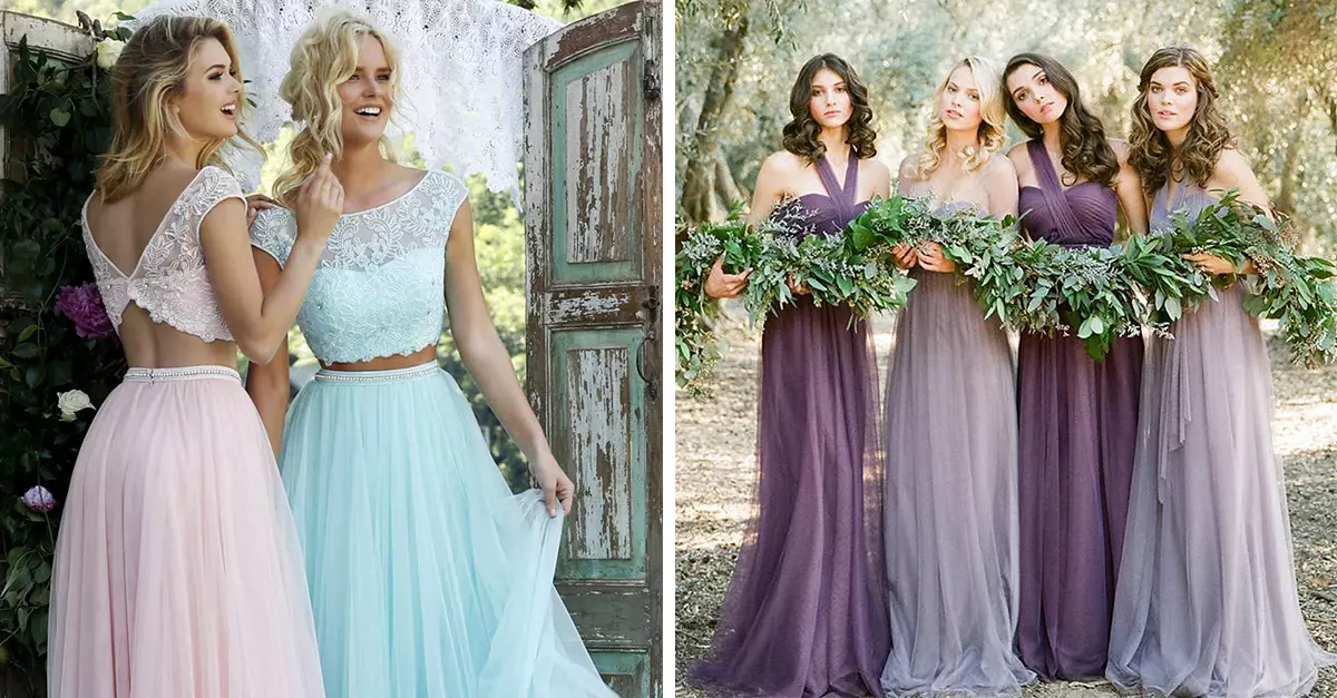 Marca la personalidad de cada una de tus damas de honor con vestidos dispares.