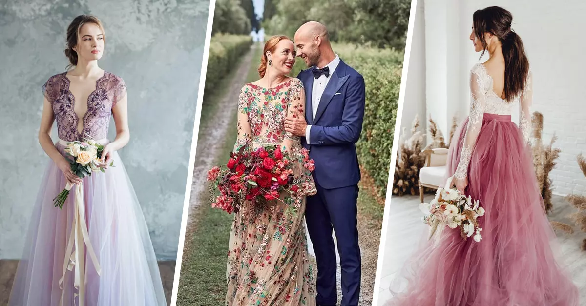 Los vestidos blancos son bellos y elegantes, pero para gustos, los colores, ¿no? Muchas chicas han optado por romper la tradición y se aventuran a usar un poco, o mucho, color para dar el sí en el altar.
